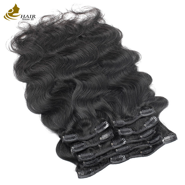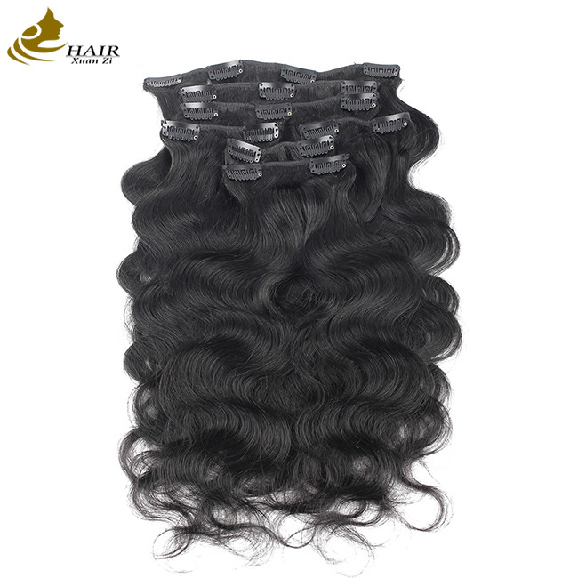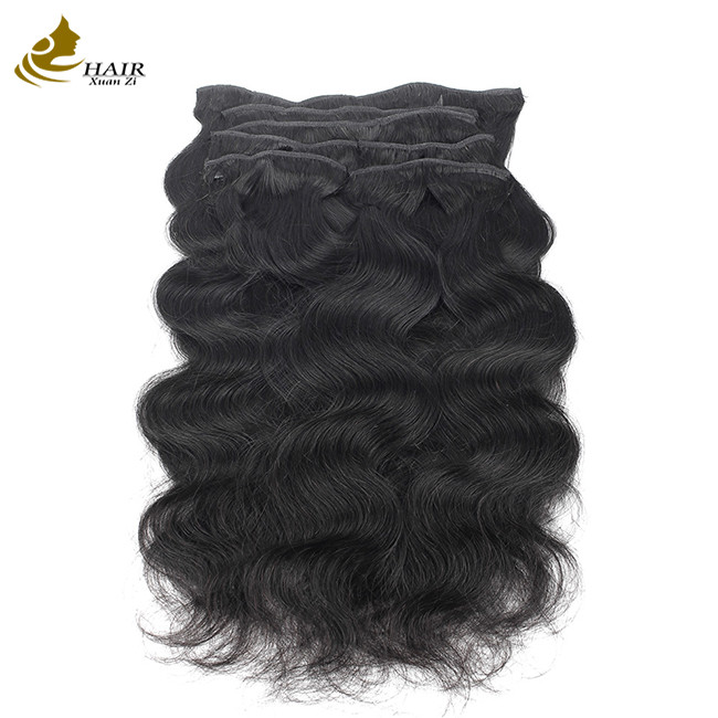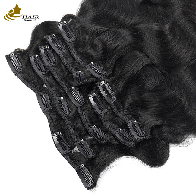 | Όνομα προϊόντος | Χονδρικό κλιπ Natural Black Brazilian Remy Human Hair Body Wave Clip In Hair Extensions |