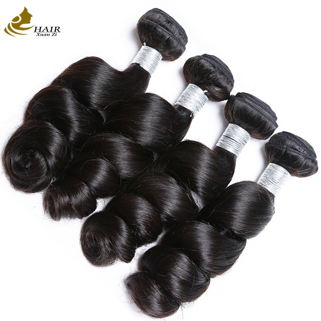 Κουτιτούλα ευθυγραμμισμένη παρθένα ανθρώπινη τρίχα δέσμη 3 δέσμες φυσικό μαύρο χαλαρό κύμα με μπροστινό κλείσιμο δαντέλα